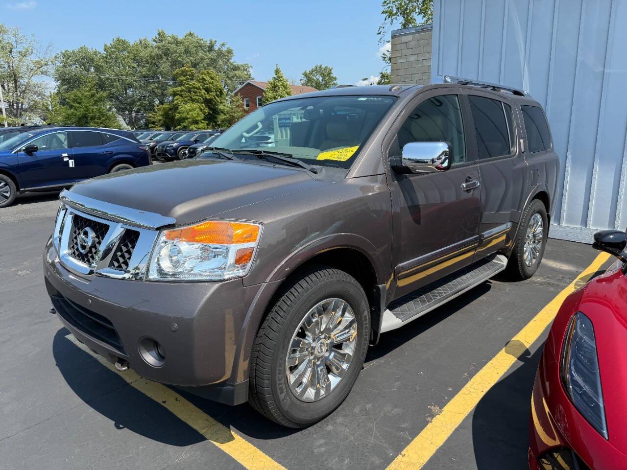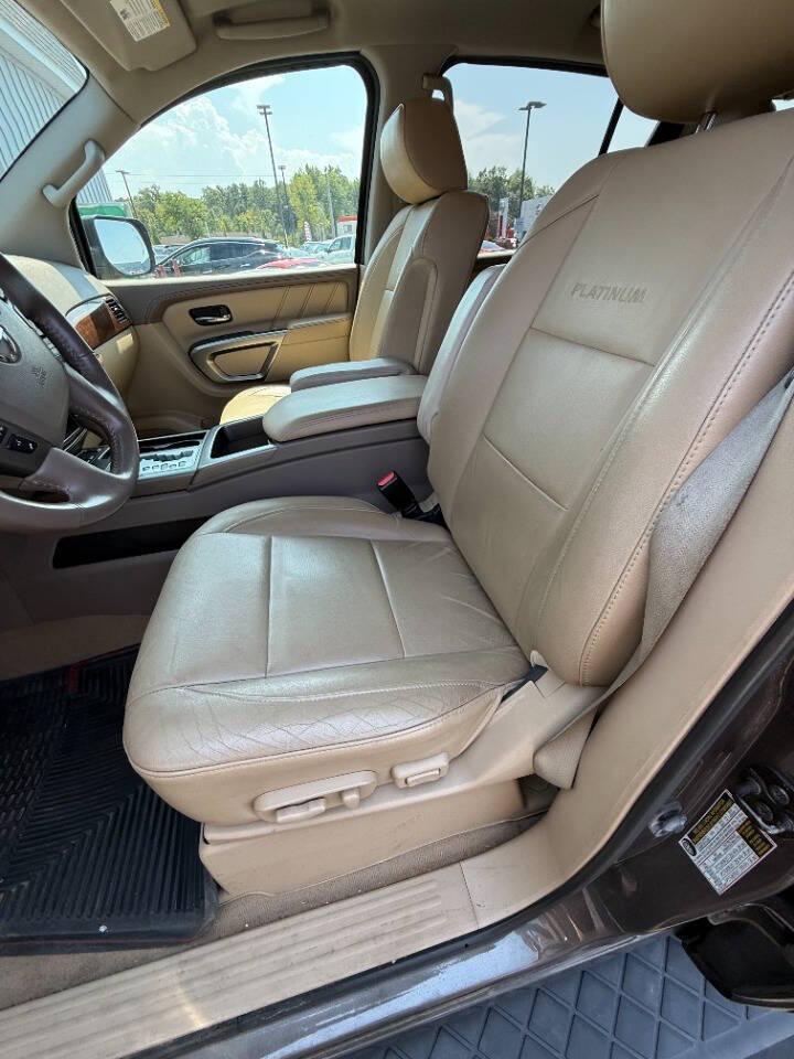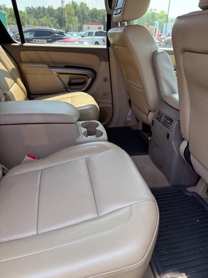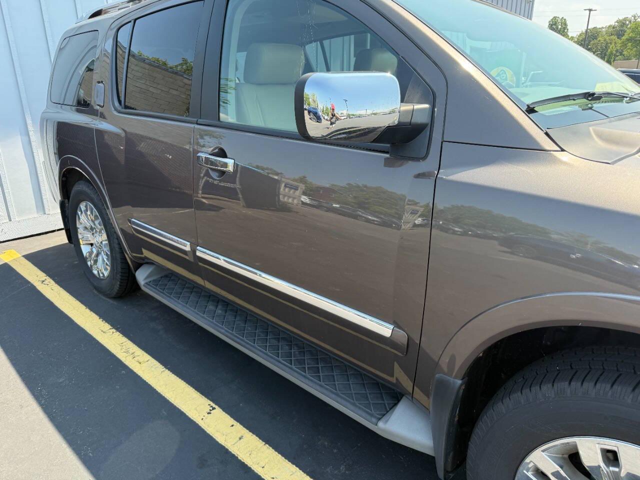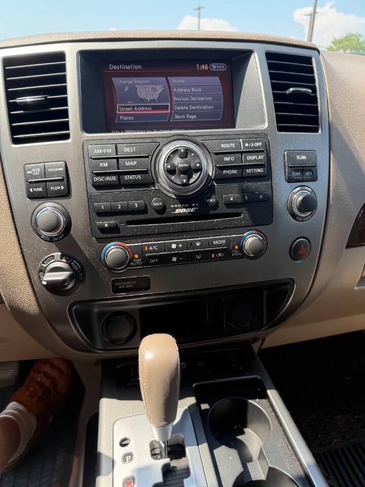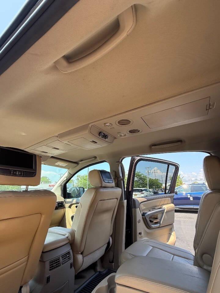 2015 Nissan Armada platinum 4x4 with 21,519 miles was hit in the rear and repaired back in 2016 when it had 8,000 miles. New Michelin tires and brakes cold AC nice interior. This vehicle has a rebuilt/salvage title that is now a New York state title with the rebuilt/salvage stated on it stating originally from PA. Has third row seating and video, Vehicle never has given any problems and is a great running 4X4 with room for 7. Minor damage is small crack above the driver side rear door from entering an airport parking area that had the clearance bar which pushed down on the roof rack on that side cracking the paint. no leaks and no troubles otherwise since the purchase in 2016. $15,500 or Best offer as I no longer need.